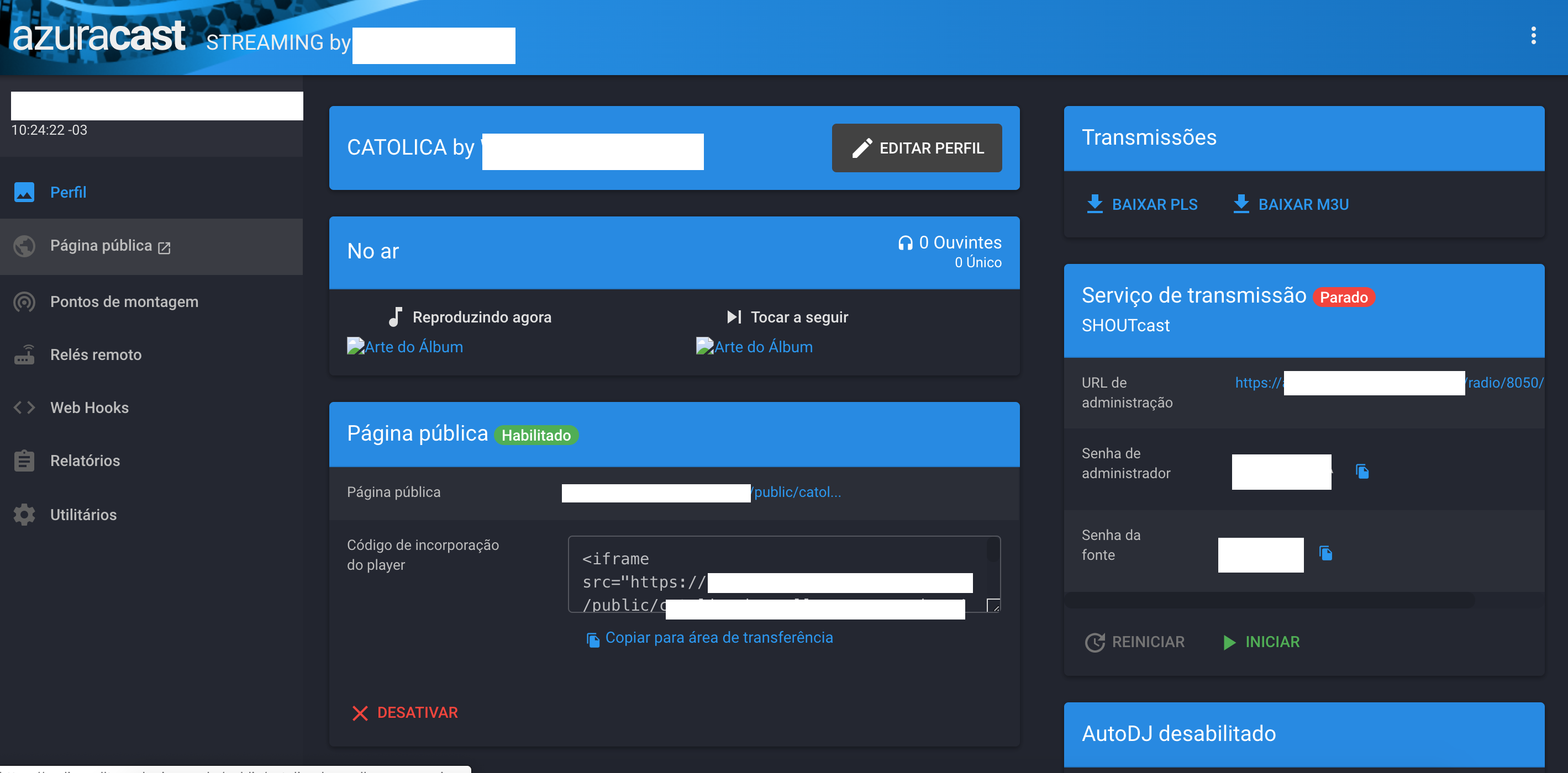 Painel de Controle Azuracast