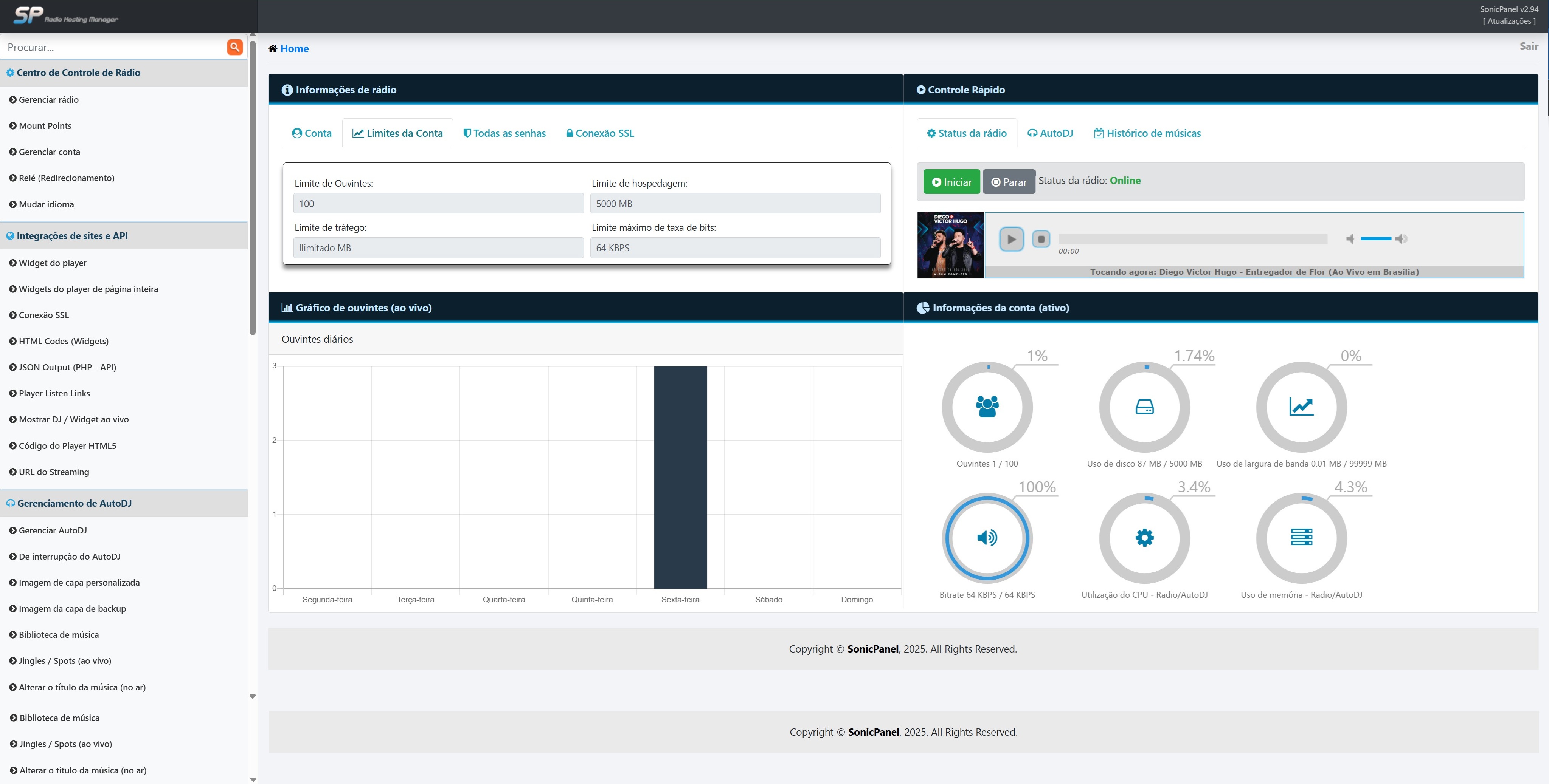 - 2.500 Ouvintes Simultâneos